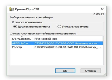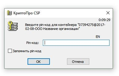 9. Если КриптоПро CSP запрашивает pin-код от контейнера, введите нужный код или попробуйте стандартные pin-коды носителей (список ниже):